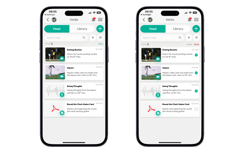 To further enhance the media features on GLF, we've introduced a new multi-delete option on the Media Feed, available to coach users. This functionality makes it easier to manage media stored on the feed and helps reduce the impact on a users phone storage.